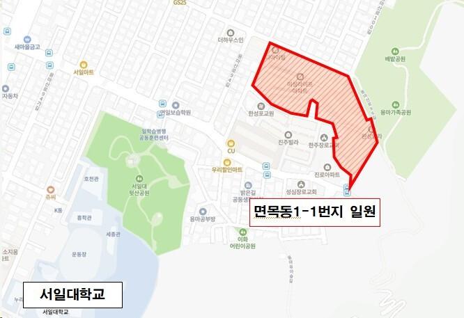 | ▲ 면목동 1-1번지 위치도. (사진=중랑구청 제공) |