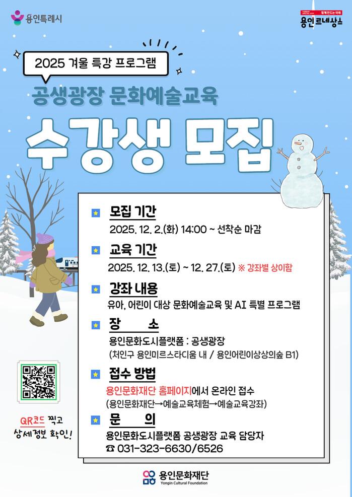 | ▲ [포스터] 용인문화재단, 2025 공생광장 문화예술교육 겨울 특강 수강생 모집 |
