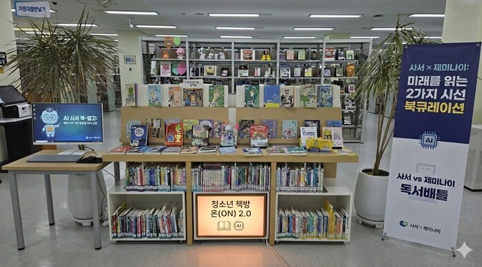 주요 내용은 청소년 전용 AI 사서 ‘북-알고(북-알고리즘)’를 비롯해 ‘사서×제미나이’ 미래를 읽는 2가지 시선 북큐레이션, ‘사서 VS 제미나이’ 취향 저격 독서 배틀 등이 있다.