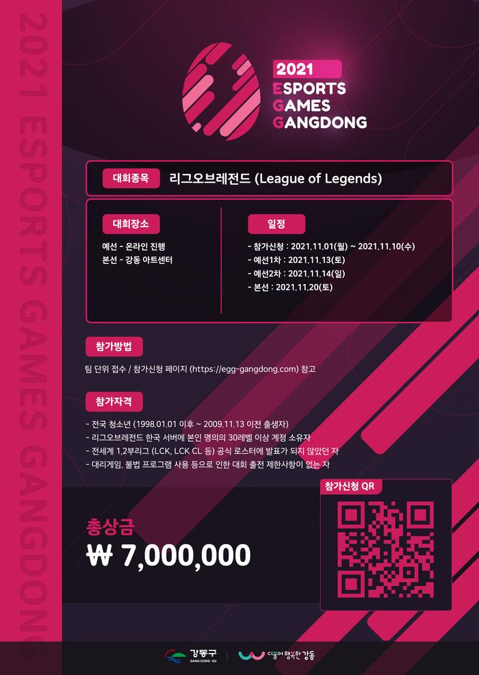 이번 대회는 기나긴 코로나19로 지쳐있는 청소년들에게 문화 활력을 제공하고 E-스포츠 도시로 도약하는 강동구의 의지를 담아 전국 대회로 마련된 것으로, 총 700만원의 상금이 걸려있다.