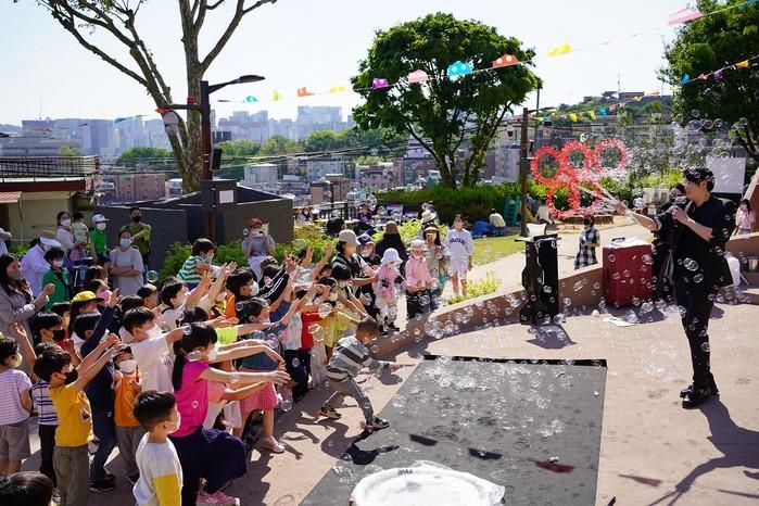 | ▲ 최근 어린이날 100주년을 맞아 열린 ‘산마루놀이터 놀이축제’에서 아이들이 즐겁게 놀고있다. (사진제공=종로구청) |