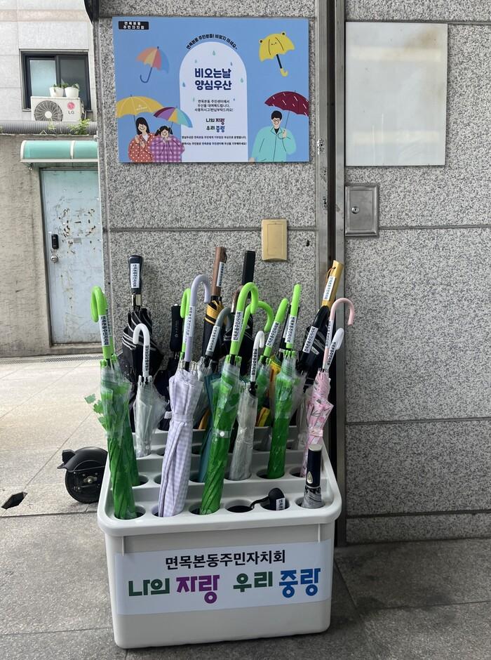 [시민일보 = 여영준 기자] 서울 중랑구(구청장 류경기) 면목본동 주민센터가 주민들을 위해 무료로 양심우산을 대여하는 민원 서비스를 제공한다.