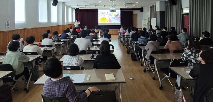 | ▲ 지난 7월 진행된 평생교육 특강 ‘이탈리아 여행’을 수강 중인 주민들의 모습. (사진=중랑구청 제공) |