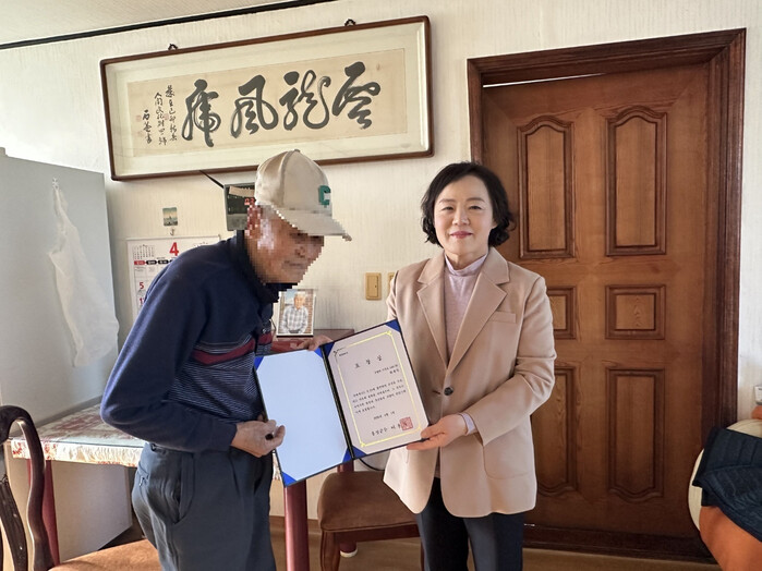 표창을 받은 유공자는 “직접 집까지 찾아와 표창장을 전달해 줘 매우 감사하다”며 소감을 전했다.