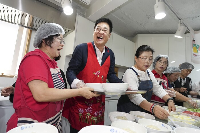 | ▲ 지난해 주민소통공모사업 ‘반찬이랑 건강이랑’ 행사에 참석한 정문헌 구청장.(사진=종로구청 제공) |