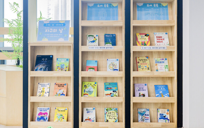 | ▲ 서대문자연사박물관 3층 ‘북파크’(Book Park)에 ‘지구의 날’ 맞춤 도서가 전시돼 있다. (사진=서대문구청 제공) |