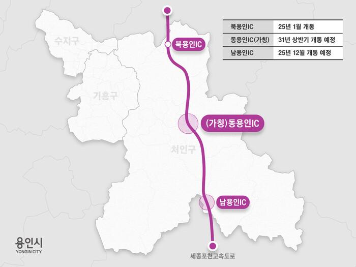 이상일 시장은 "세종포천고속도로 동용인IC가 신설되면 용인 처인구 도심의 교통흐름이 좋아지고, 지역 내 물류 이동의 효율성도 크게 좋아질 것으로 기대된다"며 "특히 처인구 고림동, 양지면 일원의 교통 여건이 많이 개선돼 시민들의 이동에 큰 보탬이 될 것으로 생각한다"고 말했다.