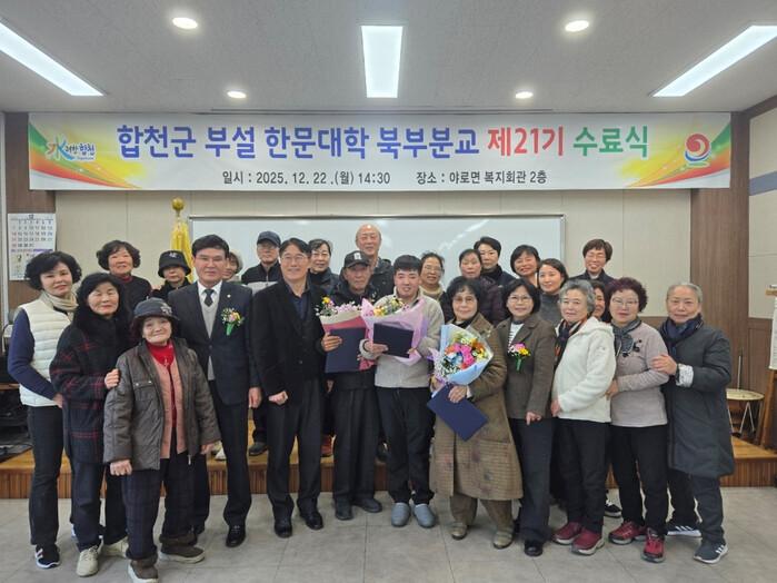 [합천=이영수 기자] 합천군 부설 한문대학 제21기 북부분교 야로교실 수료식이 22일 야로면복지회관에서 개최됐다.