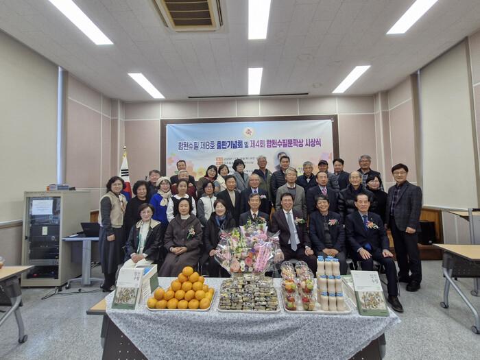 출판기념식에 이어 제4회 합천수필문학상 시상식을 가졌다. 이번에 수상자로 선정된 권길홍 수필가는 엄청난 열정과 도전 정신으로 어려운 여건 속에서도 창작활동에 매진하여 훌륭한 성과를 이뤄냈다.