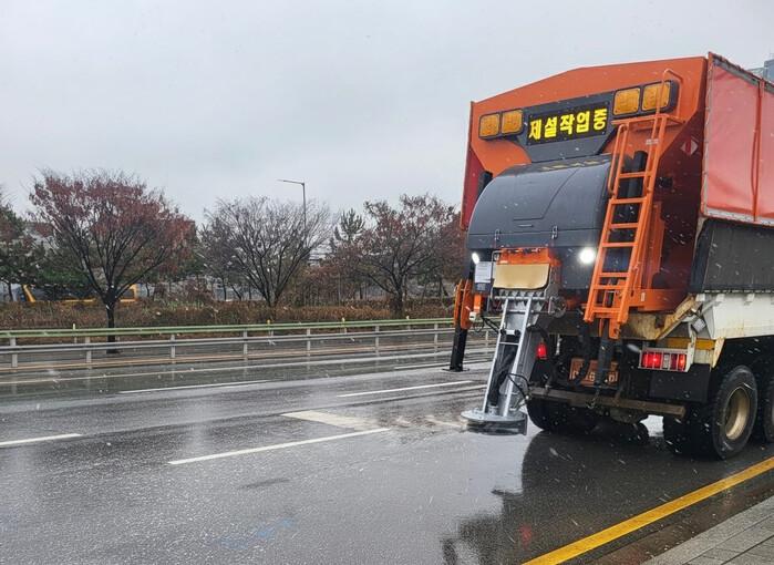 | ▲ 용인특례시 수지구 도로제설 사진. |