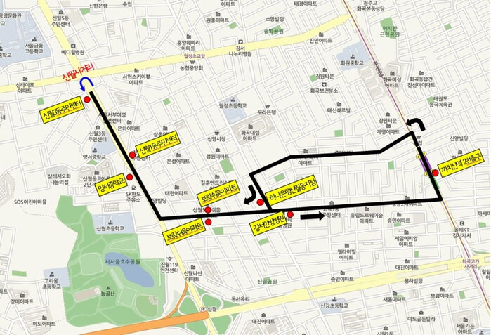 | ▲ 양천구 버스 파업 대비 무료 셔틀버스 운행구간(1노선). (사진=양천구청 제공) |