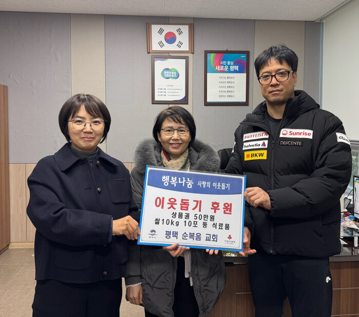이번 기부는 평택순복음교회 교인들이 지역사회 나눔 실천에 뜻을 모아 준비한 것으로, 비수급 복지 사각지대 대상자 10가구에 배분될 예정이다.
