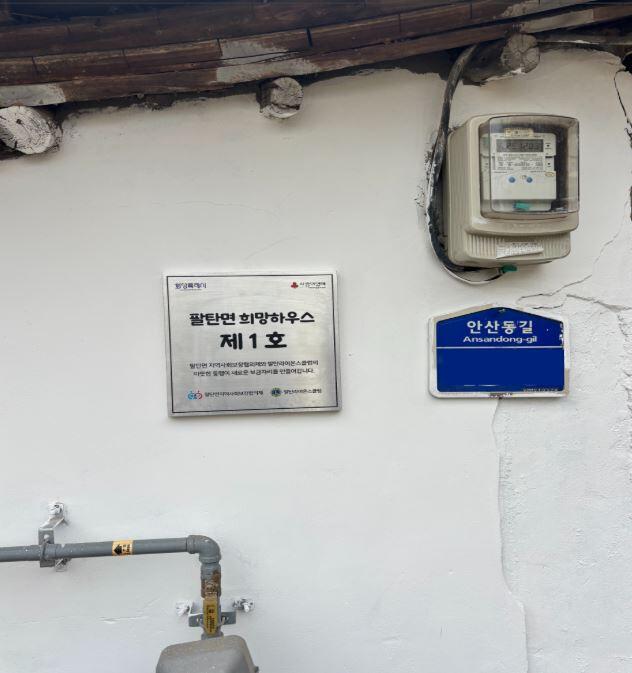 | ▲ 화성특례시 팔탄면 사회보장협의체 주거환경개선사업 팔탄면 희망하우스 제1호 현판 /사진제공=화성특례시 |