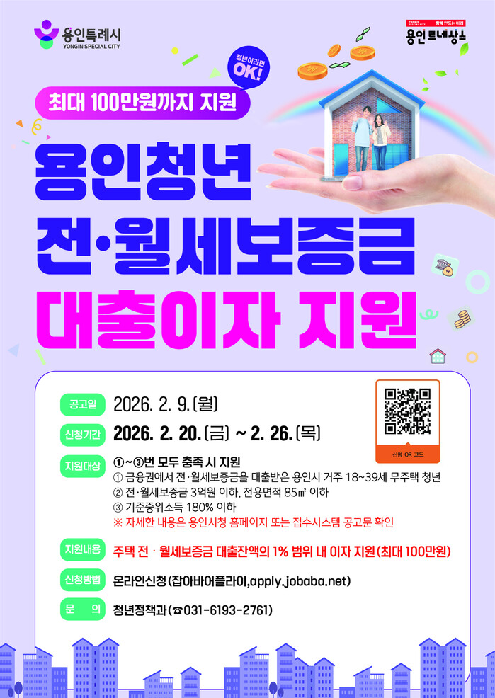 [용인=오왕석 기자] 용인특례시(시장 이상일)는 청년층의 주거비 부담을 덜고자 전월세 보증금 대출이자를 지원한다고 6일 밝혔다.