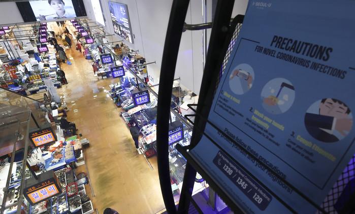 서울 동작구는 노량진수산시장에서 최근 코로나19 집단감염이 발생해 누적 63명이 확진됐다고 밝혔다. 24일 오전 시장 내부에 코로나19 방역 관련 안내문이 붙어 있다.