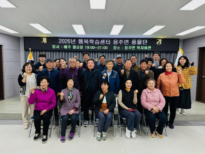하원수 용주면장은 “풍물단의 힘찬 장단이 마을 곳곳에 울려 퍼져 지역사회에 새로운 생동감을 불어넣기를 기대한다”며, “앞으로도 주민들의 눈높이에 맞춘 다양한 평생학습 프로그램을 발굴하여 배움의 기쁨이 넘치는 행복한 용주면을 만들어 나가겠다”고 전했다.