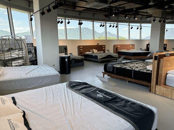 루모스는 미국 현지 법인과 딜러쉽 계약으로 유통마진을 최소화한 금액으로 상품을 공급하며, 킹침대 등 모든 종류별 매트리스 전시상품을 고객이 직접 체험해본 뒤 선택할 수 있다.