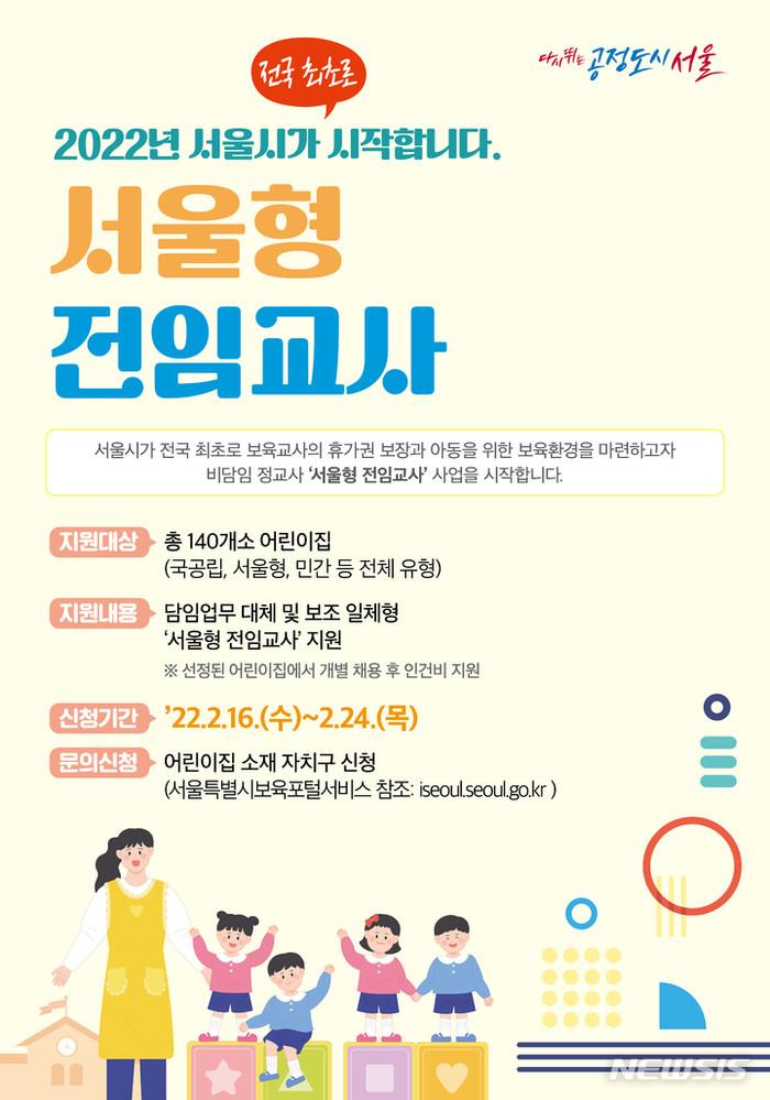 ‘서울형 전임교사’는 평상시에는 보조교사로 어린이집에 상주하다가 보육교사가 유급휴가 중일 때만 담임교사로 활동하는 정규인력으로, 올해 서울시에서 전국 최초로 시행하는 시범사업이다.