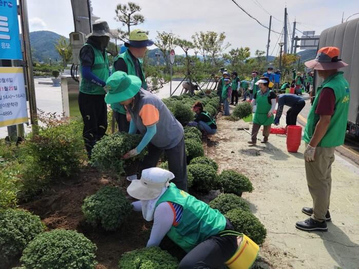 이날 식재는 새마을운동합천군지회 아름다운 합천가꾸기 사업으로 실시됐으며, 여름맞이 꽃식재에 이어 가을을 맞아 국화꽃 3000본을 색상별로 식재했다.