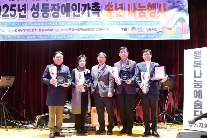 [시민일보 = 박소진 기자] 성동구의회 남연희 의장, 장지만 의회운영위원장, 박성근 복지건설위원장이 지난 29일 성동장애인종합복지관에서 열린 감사패 전달식에서 성동구 기능·장애인정보화협회 회장으로부터 장애인 복지 발전에 기여한 공로를 인정받아 감사패를 수상했다.