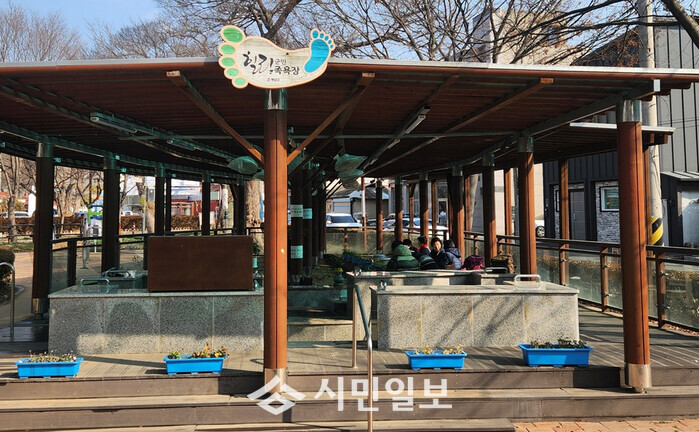 족욕장은 무료로 운영돼 인근 주민들을 비롯한 학생들의 체험 공간으로도 활용돼 사시사철 발길이 끊이지 않고 있다.
