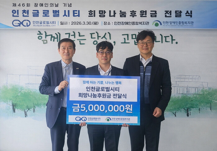 IGCD 임직원 일동은 “인천지역 사회의 일원으로서 사회적 책임을 다하고 도움이 필요한 이웃들에게 실질적인 지원을 이어가고자 한다”며 “지속적인 나눔 활동을 통해 따뜻한 지역사회를 만드는 데 기여하겠다”고 말했다.