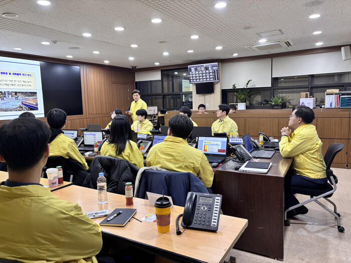 진교훈 서울 강서구청장이 지난 1일 밤부터 2일 새벽 사이에 서울 전역에 많은 눈이 내릴 것이 예보됨에 따라 구 제설대책본부를 찾아 제설대응 체계를 점검했다. 사진은 진 구청장(맨 오른쪽)이 강설량을 비롯해 제설 장비와 인력 운영 현황, 취약지역 대응 방안 등 전반적인 제설대책상황을 점검하는 모습. (사진=강서구청 제공)