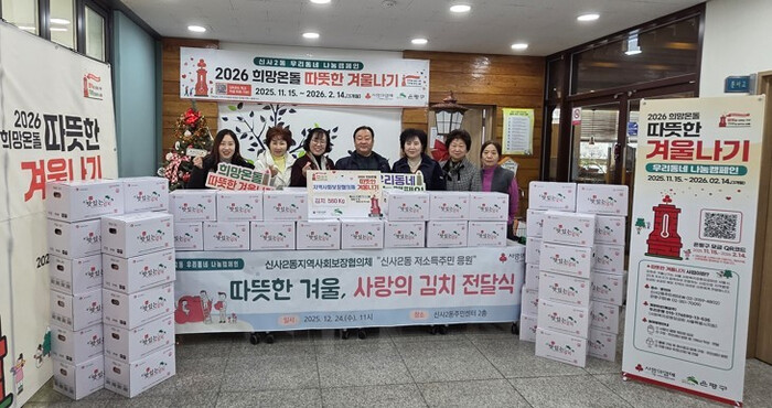 임춘재 신사2동장은 “지역사회보장협의체에서 보내주신 변함없는 관심과 나눔 실천에 진심으로 감사드린다”며 “정성껏 마련해주신 김치가 이웃들의 겨울 일상에 작은 힘이 될 수 있도록 세심하게 전달하겠다”고 말했다.