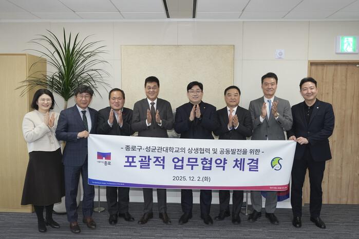 [시민일보 = 이대우 기자] 종로구(구청장 정문헌)가 최근 구청장실에서 성균관대학교와 지역사회 발전 및 미래 성장 기반 구축을 위한 ‘포괄적 업무협약(MOU)’을 체결했다.