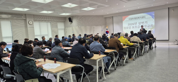 [안성=오왕석 기자] 안성시 미양면(면장 손인철)은 지난 2월 24일(화) 미양면 행정복지센터 3층 대회의실에서 관내 경로당 회장 및 총무 72명을 대상으로 ‘2026년 상반기 경로당 보조금 집행 역량 강화 실무교육’을 실시했다.