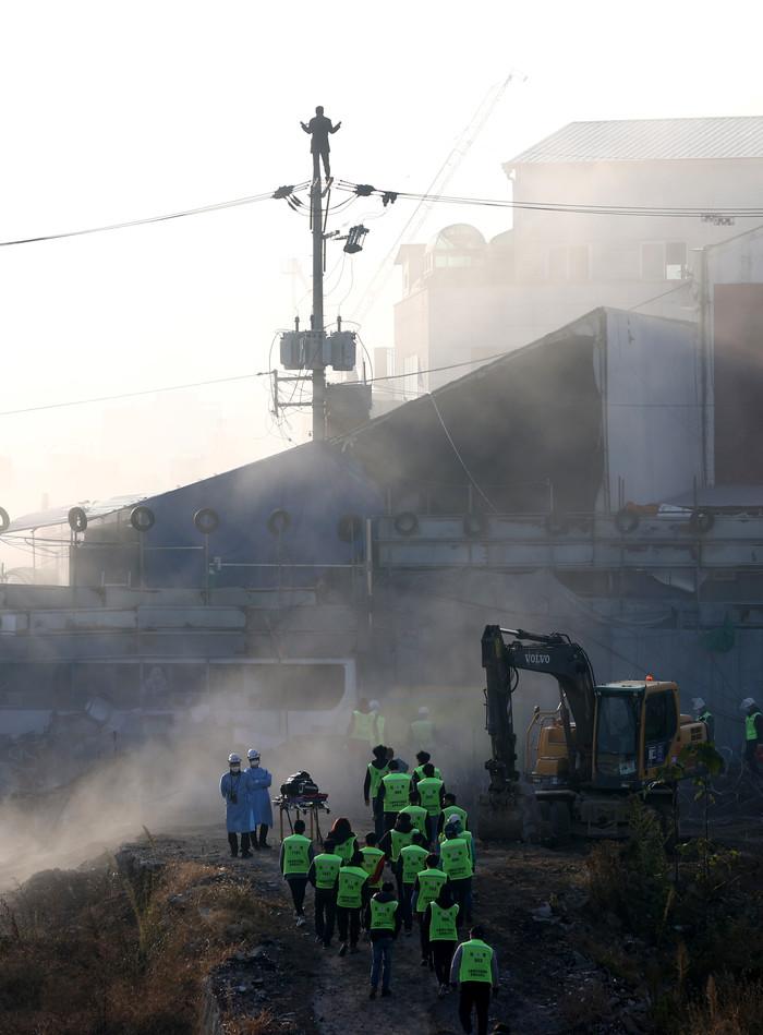 15일 서울 성북구 사랑제일교회에서 6차 명도집행에 나선 서울북부지법 집행인력이 지붕과 전봇대 위에 올라간 교인들과 대치하고 있다. 사랑제일교회는 철거 문제로 재개발조합과 갈등을 빚어왔다.