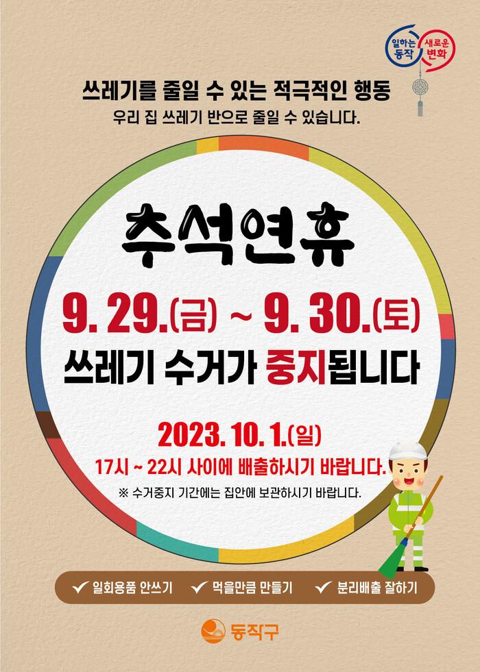 | ▲ 동작구 추석 연휴 쓰레기 배출 중지 안내문 (사진=동작구청 제공) |