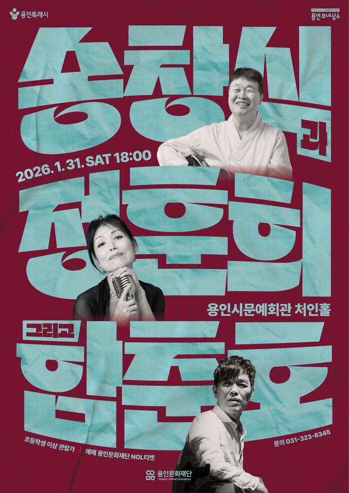 [용인=오왕석 기자] 용인문화재단(이사장 이상일)은 2026년 1월 31일(토) 오후 6시 용인시문예회관 처인홀에서 한국 대중음악의 거장들이 함께하는 공연⟨송창식과 정훈희 그리고 함춘호⟩를 개최한다. 이번 공연은 2026년 처인구 문화콘텐츠 브랜드 ‘만원 조아용’ 시리즈의 일환으로 마련된 것으로, 새해를 맞아 용인시민 누구나 부담 없이 즐길 수 있는 고품격 공연을 선보이고자 기획되었다.