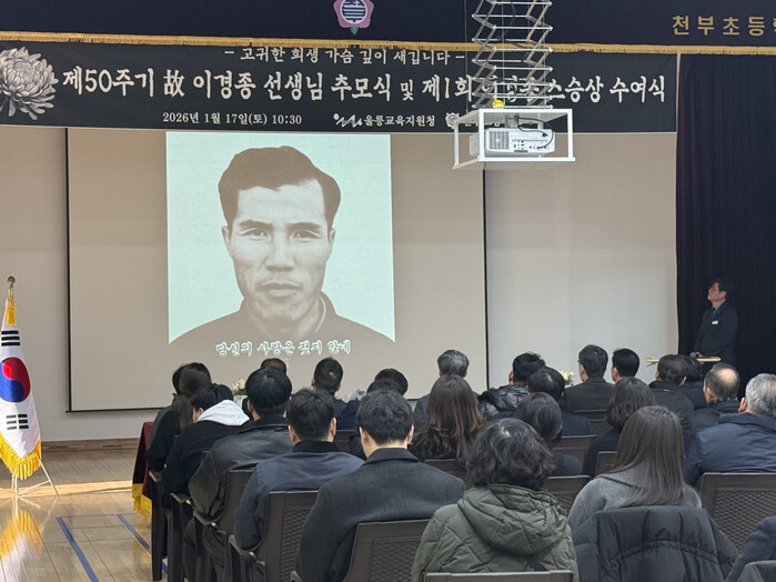 울릉교육지원청(교육장 이동신)은 2026년 1월 17일(토) 故 천부초등학교 이경종 스승 추모비 앞에서 ‘제1회 이경종 스승상 수여식 및 故 이경종 스승 추모식’을 개최했다.