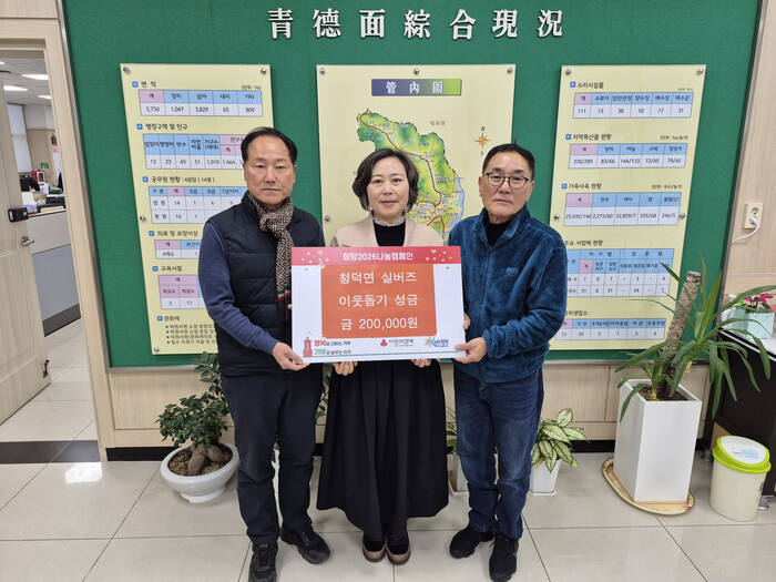 이은숙 청덕면장은 “매년 어려운 이웃들을 위해 성금을 주신데 감사드린다”며 “기탁된 성금은 도움이 필요한 이웃들에게 잘 전달하겠다”고 밝혔다.