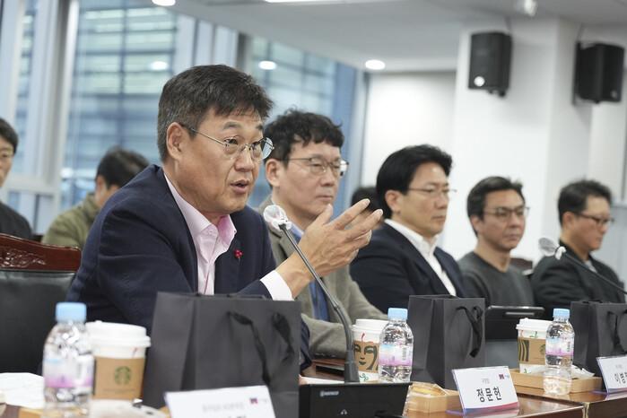| ▲ ‘광화문스퀘어 옥외광고물 자유표시구역 민관합동협의회’ 하반기 정기회의에 참석한 정문헌 구청장이 발언을 하고 있다. (사진=종로구청 제공) |