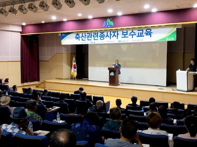 보수교육은 모든 축산인들이 매년 6시간 받아야 하는 교육과정으로 이날 교육에서는 친환경 동물복지 및 축산환경, 축산법규 및 축산차량등록제, 가축방역 및 질병관리 등을 이수하게 하였다.
