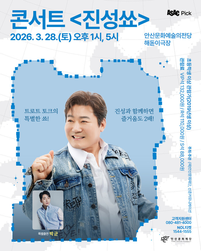 ‘ASAC Pick’은 안산문화재단이 민간 제작사와의 협력을 통해 작품성과 대중성이 검증된 우수한 콘텐츠를 엄선하여 선보이는 공동기획 브랜드로 올해 첫 문을 여는 <진성쑈>는 선준커뮤니케이션과 함께 기획하여 더욱 풍성한 무대 연출을 예고하고 있다.