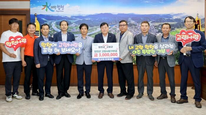 군수실에서 열린 기부식에는 합천군 축산인 3개 단체장과 고령군 축산인 6개 단체장이 참석했다. 이날 기탁한 기부금은 축산인 단체장들의 자발적 참여로 합천군 7개 단체장이 고령군에 300만원, 고령군 6개 단체장이 합천군에 300만원을 기부하며 지역발전을 응원했다.
