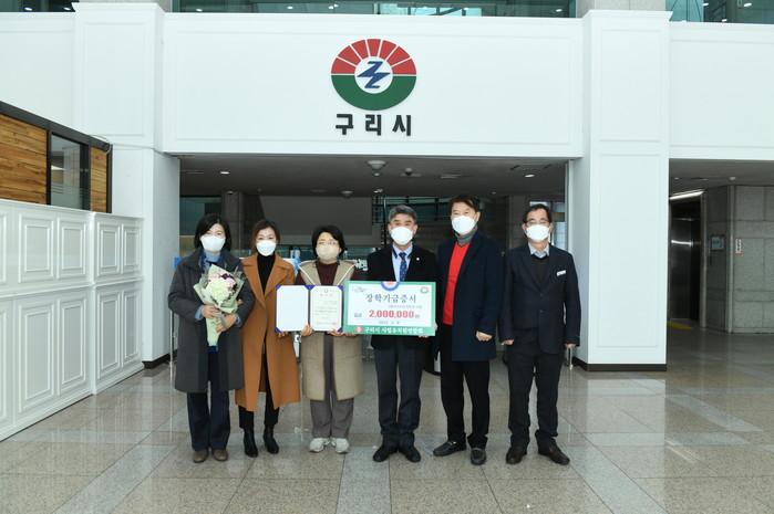 재단법인 구리시민장학회는 9일 MG구리새마을금고로부터 기부금 300만원을, 경기 구리시 사립유치원연합회로부터 기부금 200만원 기탁받았다. 사진은 전달식에서 구리시 사립유치원연합회 관계자들이 기념촬영을 하는 모습. (사진제공=구리시청)