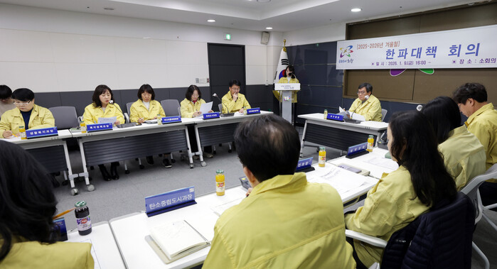 서울 노원구가 최근 구청 5층 소회의실에서 한파특보 예보에 따른 긴급회의를 열고, 한파 대응 방안을 점검했다. 회의는 신종우 부구청장 주재로 안전도시과, 복지정책과, 어르신복지과 등 관련 부서장이 참석한 가운데 진행됐다. 사진은 신 부구청장이 회의를 주재하는 모습. (사진=노원구청 제공)