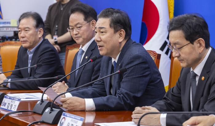 한정애 정책위원장도 이날 이 자리에서 “이재명 정부 첫 예산안에 대한 심사가 진행되고 있는데 우려스러운 것은 국민의힘이 국민들께 꼭 필요한 민생 예산까지 ‘묻지마 삭감’ 의견을 내고 있다”고 야당을 향해 비판의 목소리를 냈다.