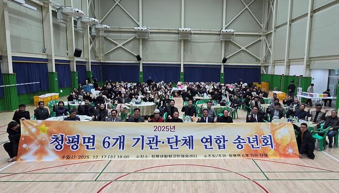 이날 송년회에는 박성규 청평면장을 비롯해 이장협의회, 주민자치회, 남·여 새마을지도자협의회, 체육회, 지역사회보장협의체 등 6개 기관·단체장과 관계자 180여 명이 참석했다. 참석자들은 지역 발전을 위해 함께 걸어온 지난 1년을 돌아보며 서로의 노고를 격려했다.