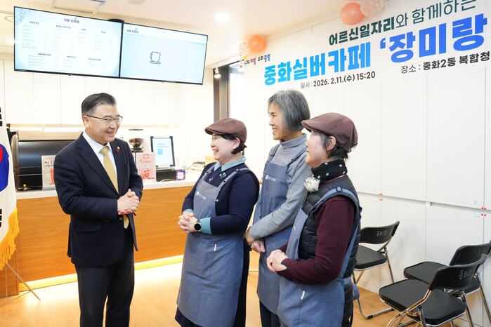 류경기 구청장은 “중화2동 주민센터와 중화문학도서관이 함께 운영되는 곳에 실버카페 ‘장미랑’이 문을 열었다”며 “행정과 문화, 어르신 일자리가 함께 운영되며 주민들이 일상 속에서 이용하는 생활 거점 공간으로 거듭났다”고 말했다.