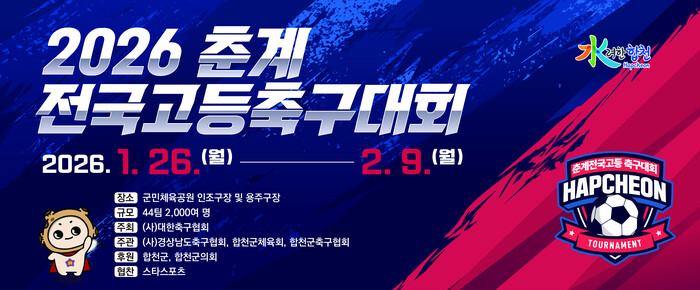 대한축구협회가 주최하고 경상남도축구협회와 합천군체육회, 합천군축구협회가 공동 주관하는 이번 대회에는 전국 44개팀, 2,000여 명의 선수가 참가해 15일간 겨울 추위 속 열정 가득한 경기를 이어나간다.
