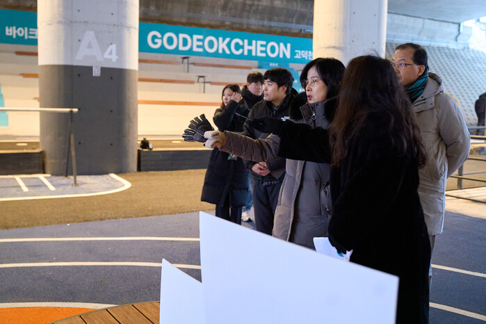 또한, 고덕천에서 한강으로 이어지는 주요 접근 구간에는 안내사인과 거점 표식을 설치해 이용 편의를 개선했다. 특히 고덕토평대교가 조망되는 한강 데크 구간도 함께 정비해 벤치와 쉼터 기능을 강화했으며, 이에 따라 주민과 인근 직장인, 한강 자전거길을 이용하는 라이더들이 운동 후 자연스럽게 머물며 휴식을 취할 수 있는 전망형 수변 쉼터로 재탄생했다.