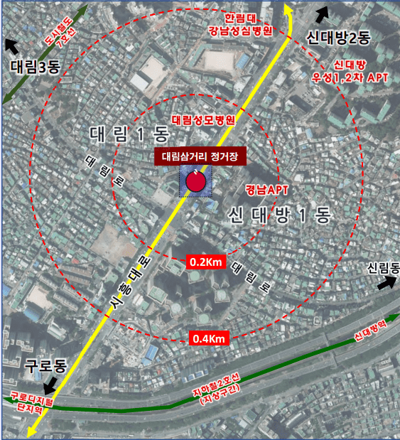 신안산선 대림삼거리역 일대는, 2018년 신안산선 지하철 공사의 사업방식이 재정사업에서 민간투자사업으로 변경되고, 출입구가 3곳에서 2곳으로 축소되면서, 지하철 이용에 상대적 불편과 박탈감을 호소하며 추가출입구 설치를 요청하는 지역주민의 민원이 지속적으로 제기되어 왔던 지역이다.