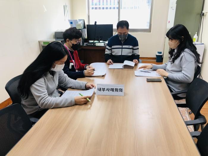 경기 동두천시 중앙동행정복지센터는 23일 내부 사례회의를 개최해 최근 돌봄 및 주거환경 전반에 문제가 발생해 총체적인 어려움에 놓인 홀몸노인을 안건에 상정해 발표와 토론을 진행했다. 사진은 이날 회의가 진행되고 있는 모습. (사진제공=동두천시청)