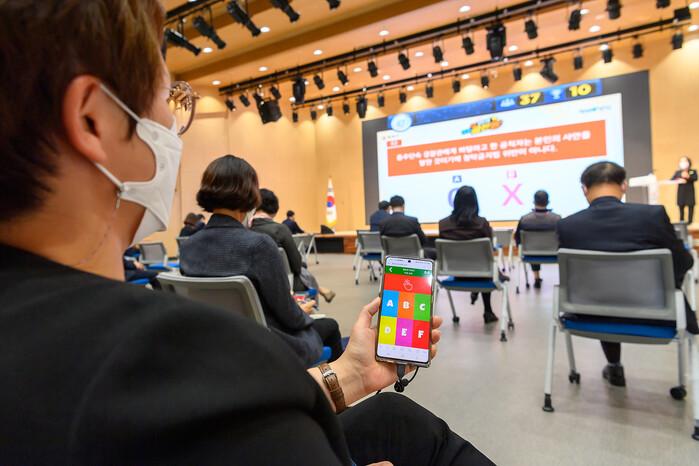 특히 구는 실시간 집계가 어려운 화이트보드 응답 방식에서 탈피해 MZ세대 공무원의 취향을 저격하는 ‘전자투표 리모컨 시스템’과 영상을 활용한 문제 출제 방식을 도입하고, 청렴 레크레이션 전문 강사를 초빙해 토크콘서트 분위기를 연출하는 등 스마트한 청렴골든벨을 진행할 계획이다.