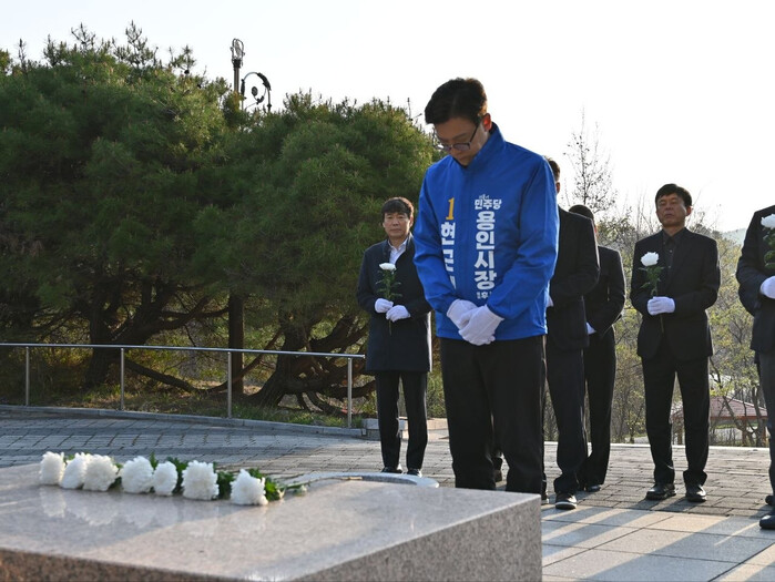 헌화를 마친 현 후보는 “1919년 3월 21일 원삼면에서 시작된 함성은 용인 전역으로 들불처럼 번져나갔다”며 “권력의 총칼 앞에서도 굴하지 않았던 시민들의 용기는 오늘날 용인을 지탱하는 거대한 뿌리”라고 말했다.